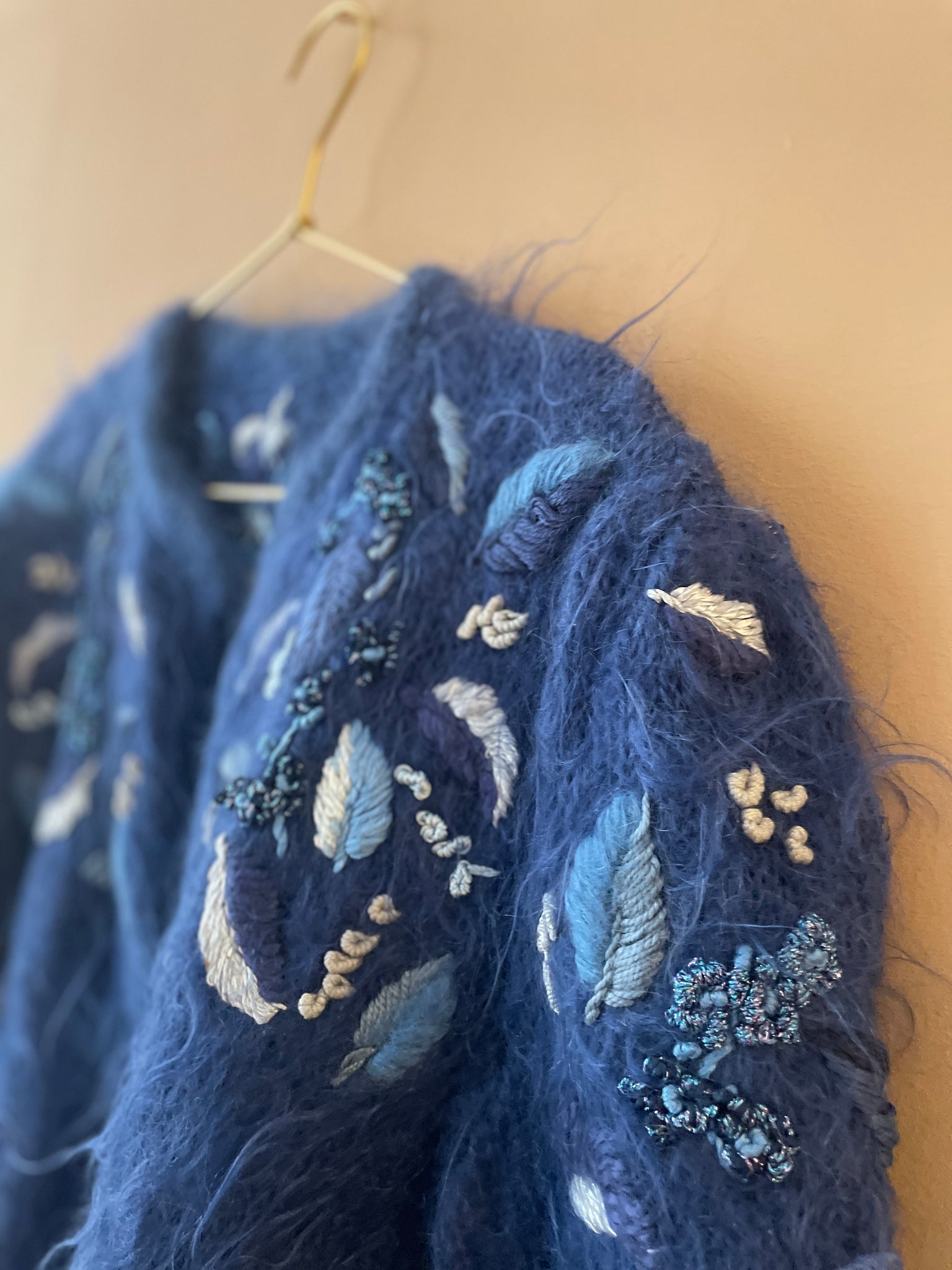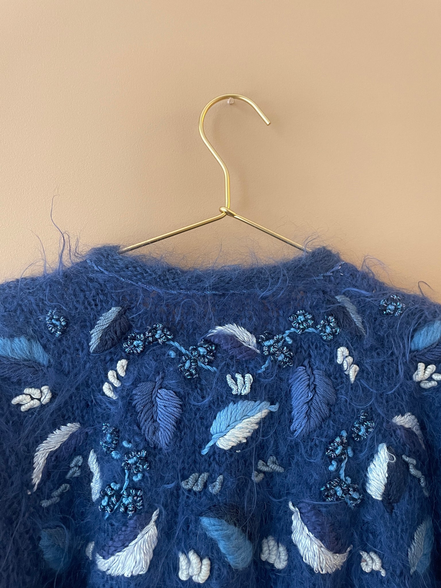 Color azul oscuro con bordados