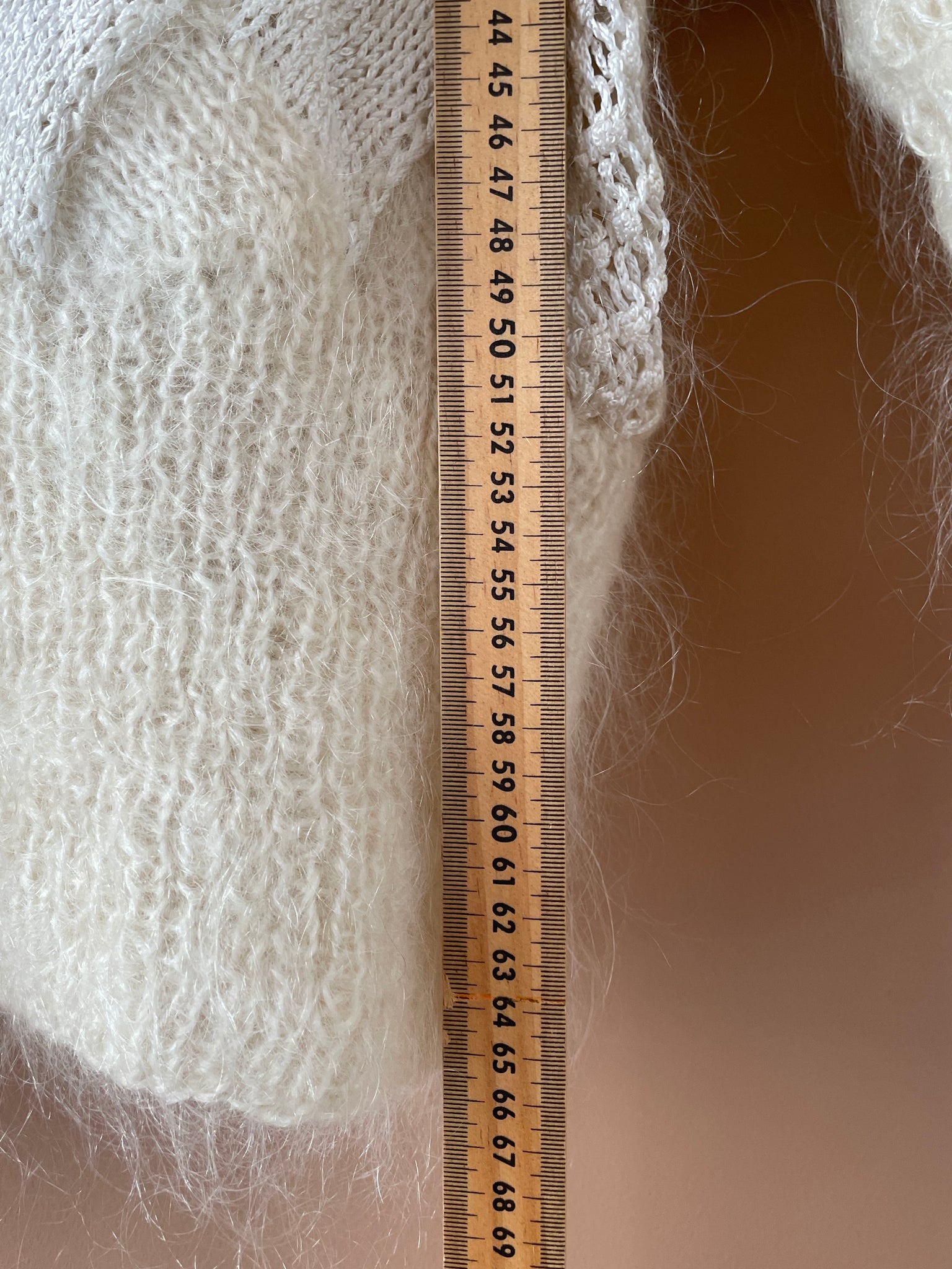 Tejido a mano con diferentes tipos de lana en tonos crema y blanco roto.
